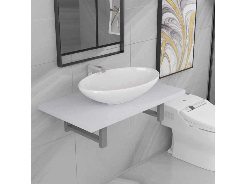 Naše praktické a nadčasové oválné umyvadlo s nástěnnou policí bude stylovým doplňkem do jakékoli koupelny, umývárny nebo toalety.