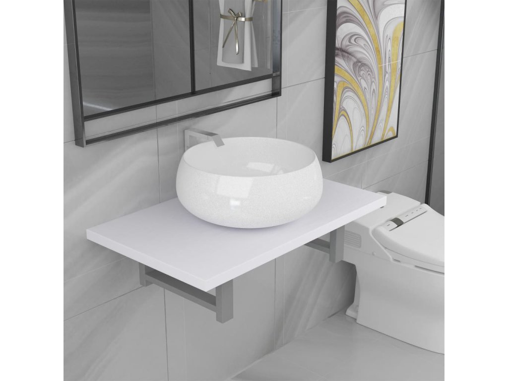 Koupelnová nástěnná police z pevného materiálu je výjimečně stabilní a odolná a perfektně doplňuje keramické umyvadlo. Toto keramické umyvadlo s vysoce lesklou povrchovou úpravou se snadno čistí vlhkým hadříkem. Polici můžete snadno upevnit ke zdi, potřebné držáky a montážní materiály jsou součástí balení.
