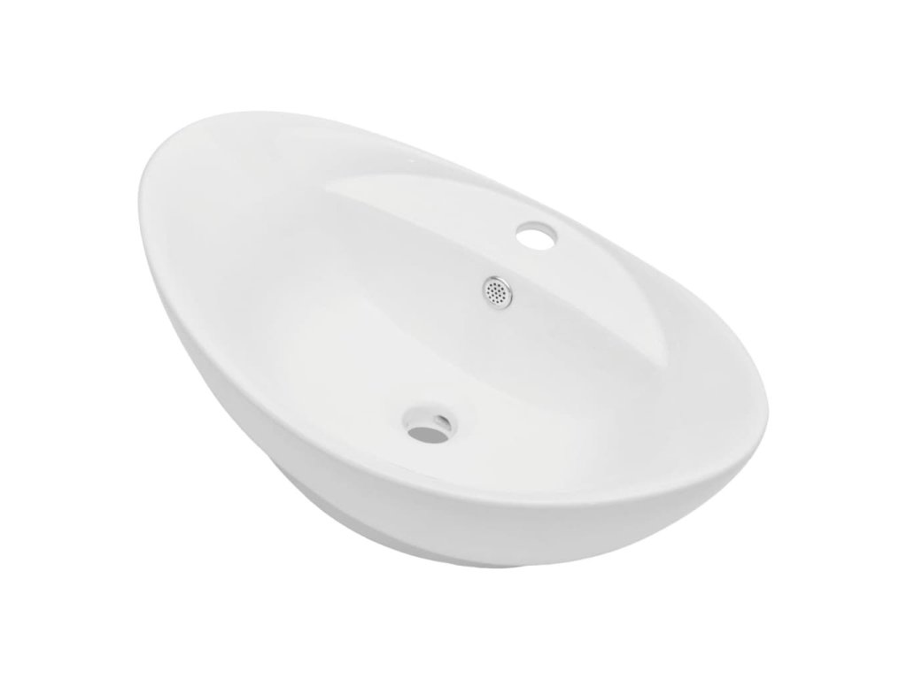 Naše praktické a nadčasové oválné umyvadlo s nástěnnou policí bude stylovým doplňkem do jakékoli koupelny, umývárny nebo toalety.