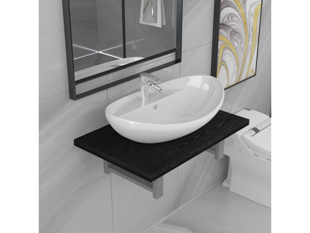 Koupelnová nástěnná police z pevného materiálu je výjimečně stabilní a odolná a perfektně doplňuje keramické umyvadlo. Toto keramické umyvadlo s vysoce lesklou povrchovou úpravou se snadno čistí vlhkým hadříkem. Polici můžete snadno upevnit ke zdi, potřebné držáky a montážní materiály jsou součástí balení.