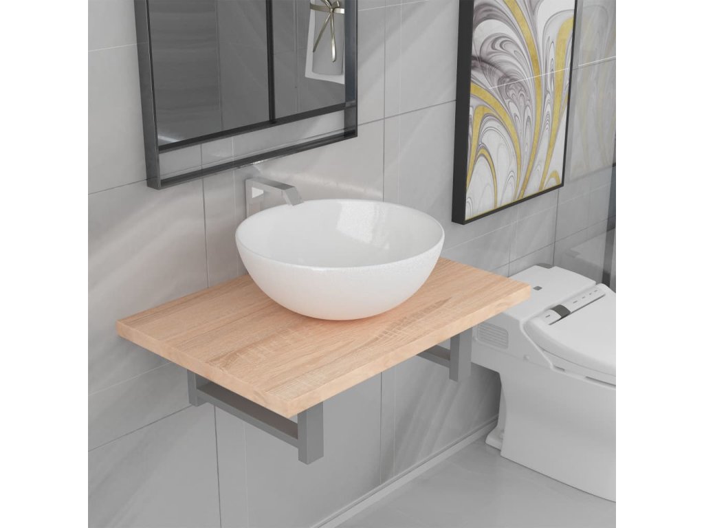 Koupelnová nástěnná police z pevného materiálu je výjimečně stabilní a odolná a perfektně doplňuje keramické umyvadlo. Keramické umyvadlo s vysoce lesklou povrchovou úpravou se snadno čistí vlhkým hadříkem. Polici můžete snadno upevnit ke zdi, potřebné držáky a montážní materiály jsou součástí balení.