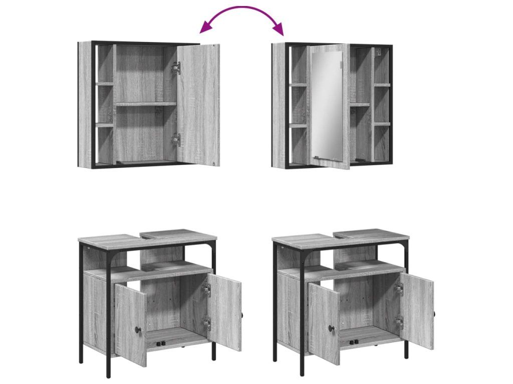 2dílný set koupelnového nábytku šedý sonoma kompozitní dřevo 3214718