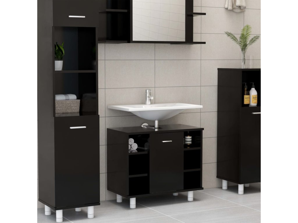 3dílný set koupelnového nábytku černý dřevotříska 3056944