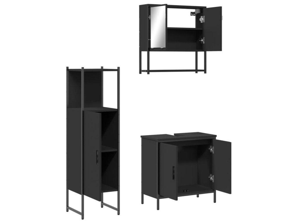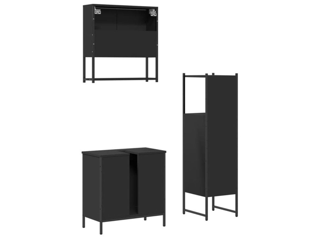 3dílný set koupelnového nábytku černý kompozitní dřevo 3214700