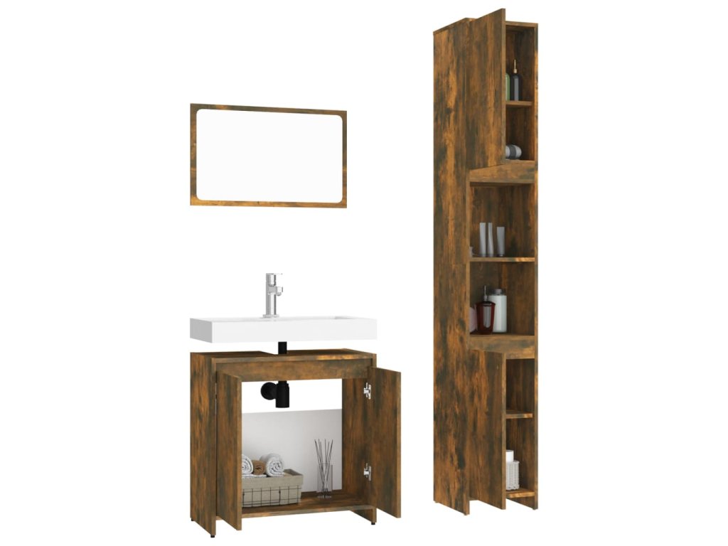 3dílný set koupelnového nábytku kouřový dub kompozitní dřevo 3152719