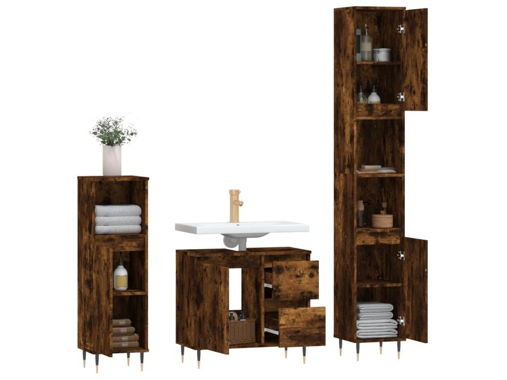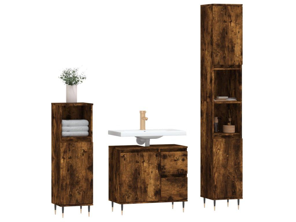3dílný set koupelnového nábytku kouřový dub kompozitní dřevo 3190218