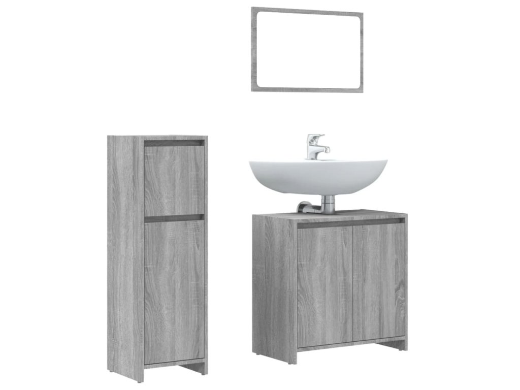 3dílný set koupelnového nábytku šedý sonoma kompozitní dřevo 3143932