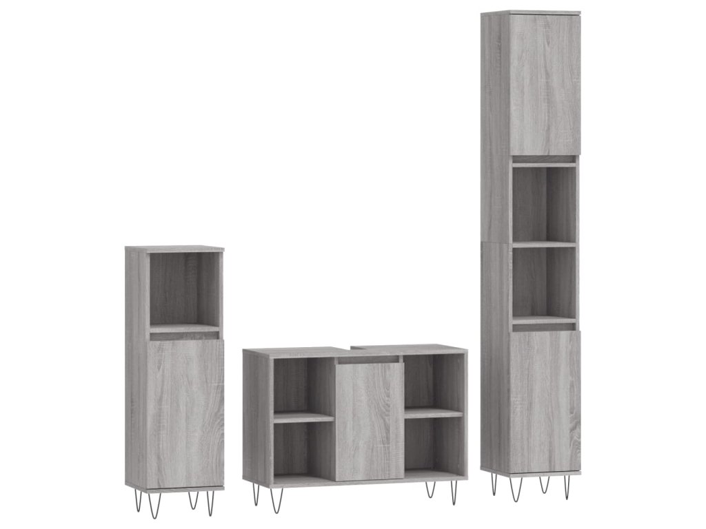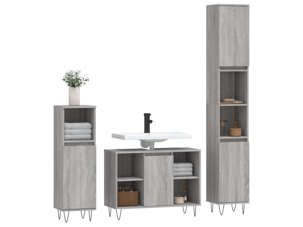 3dílný set koupelnového nábytku šedý sonoma kompozitní dřevo 3190305