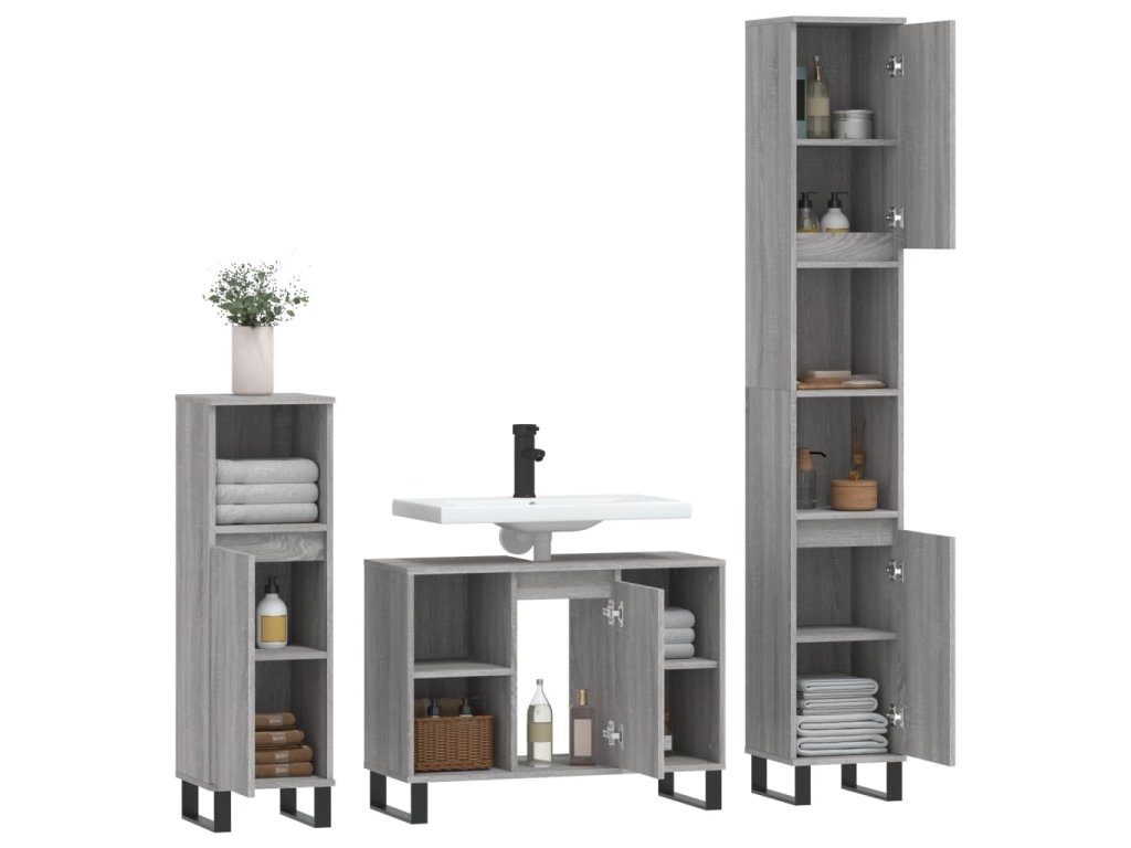 3dílný set koupelnového nábytku šedý sonoma kompozitní dřevo 3190313