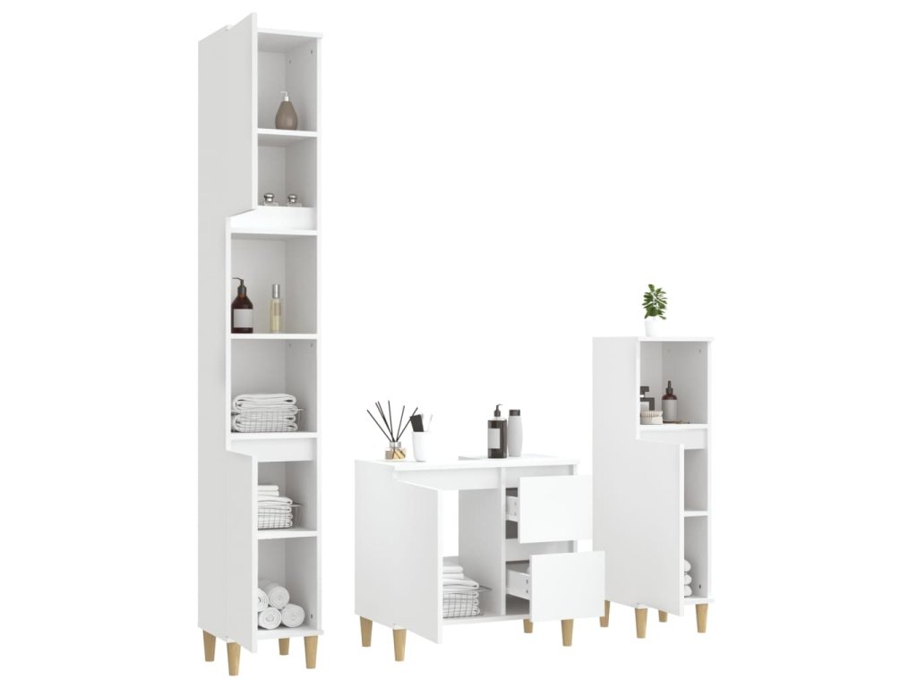 3dílný set koupelnových skříněk bílý kompozitní dřevo 3185535