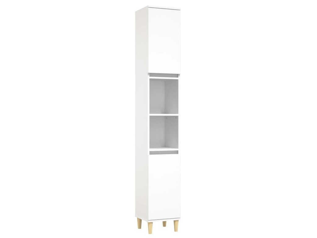 - Dřevěné nožičky: Nožičky z masivního eukalyptového dřeva dodávají koupelnové toaletní skříňce přirozený a příjemný vzhled a zároveň zajišťují stabilitu.