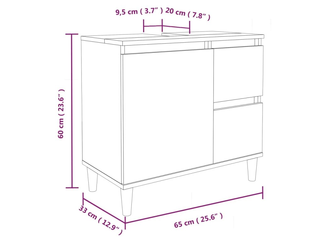 - Rozměry umyvadlové skříňky: 65 x 33 x 60 cm (Š x H x V)
