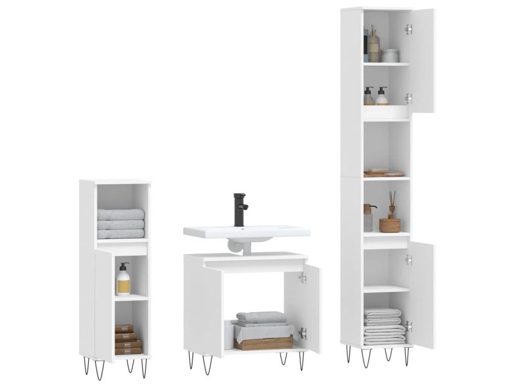 3dílný set koupelnových skříněk bílý kompozitní dřevo 3187789