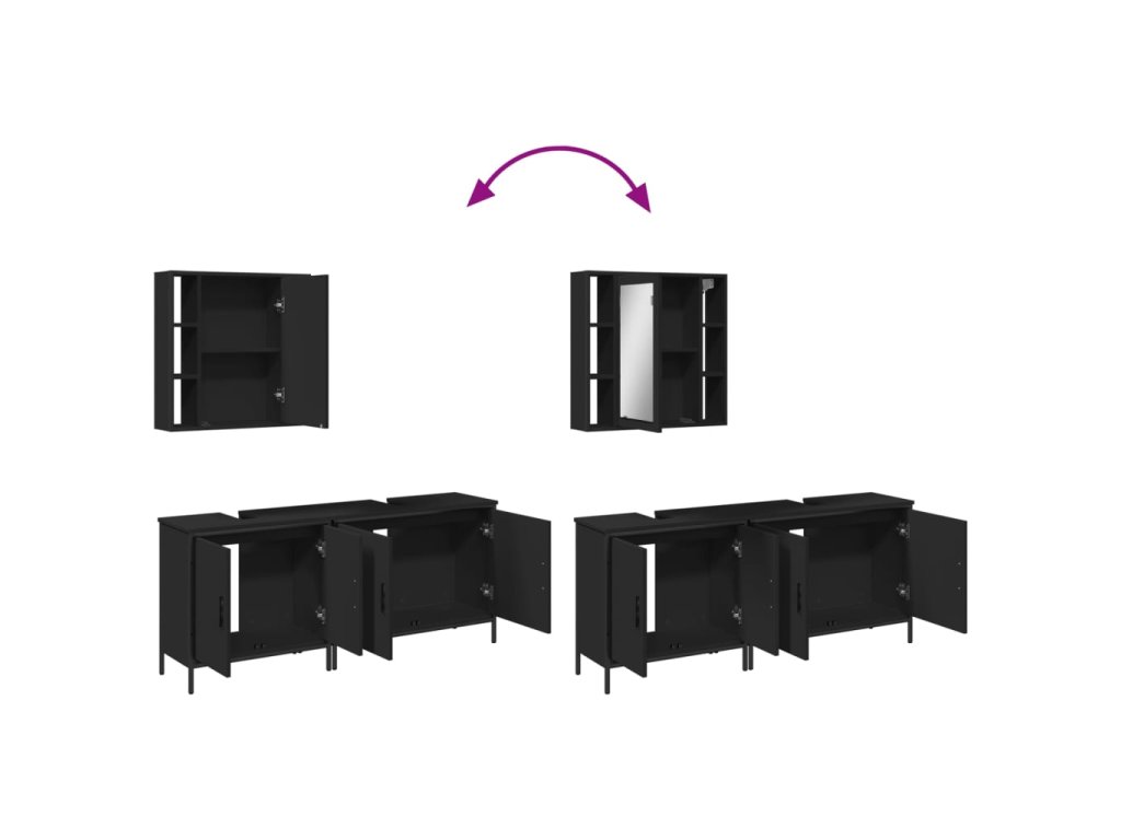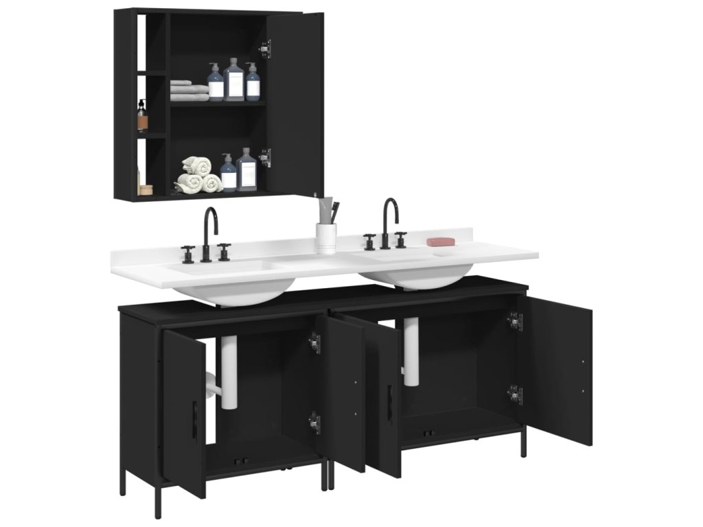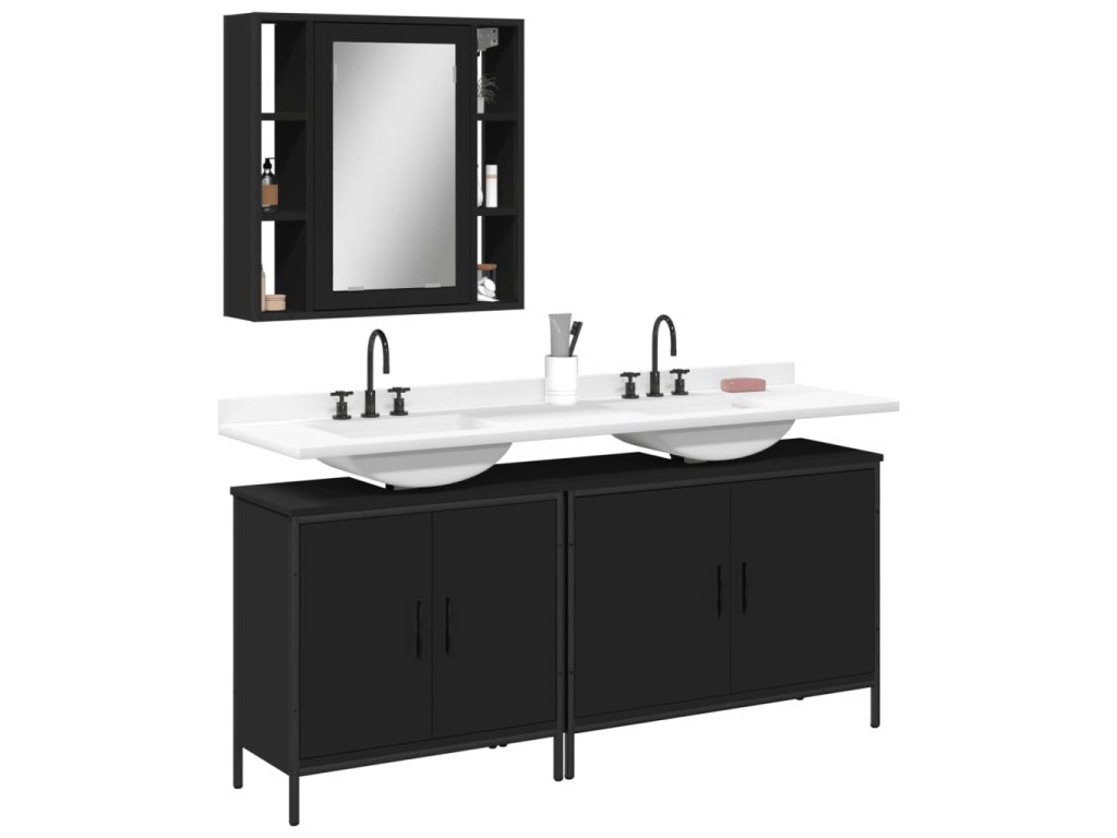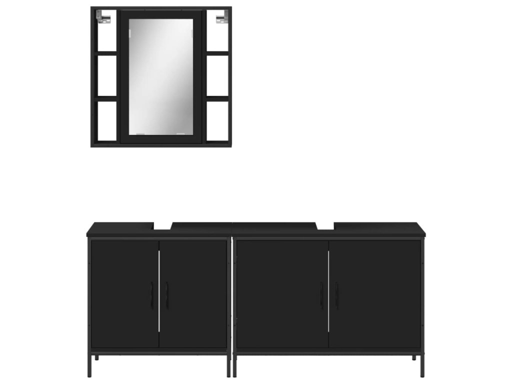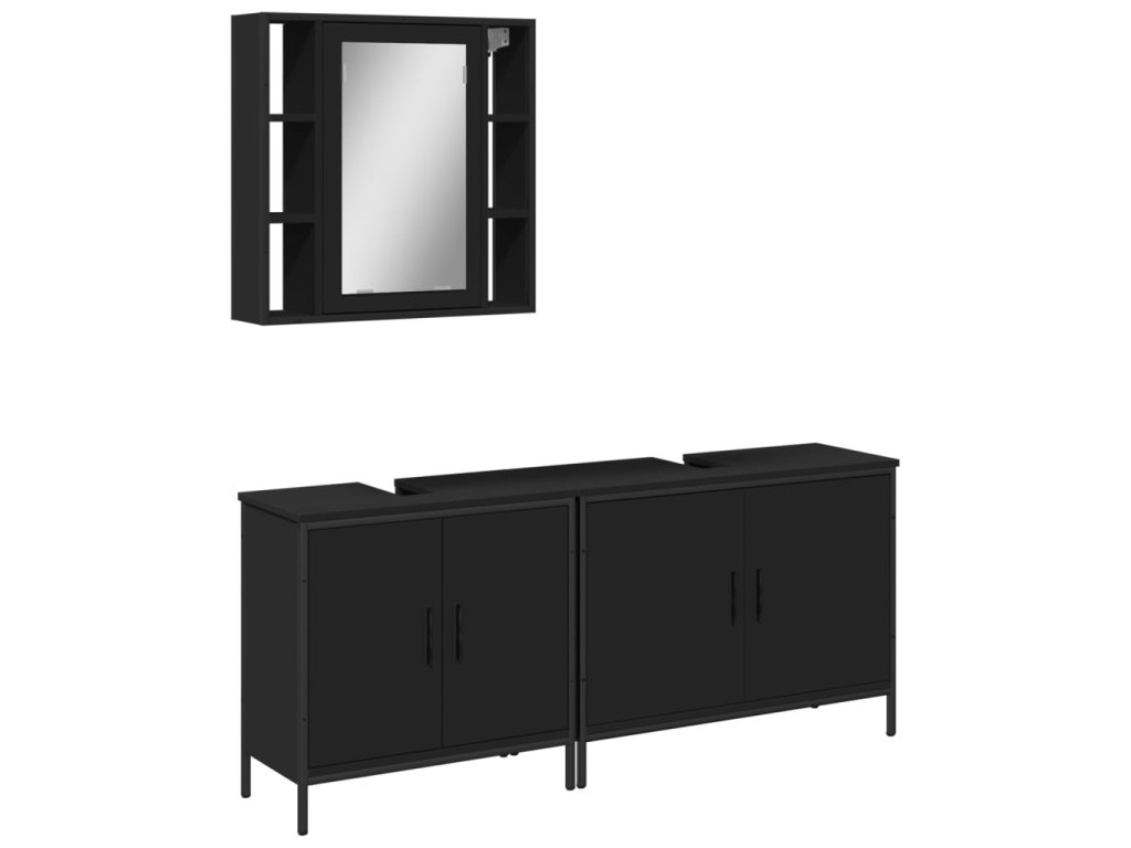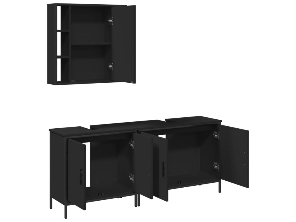 3dílný set koupelnových skříněk černý kompozitní dřevo 3214730