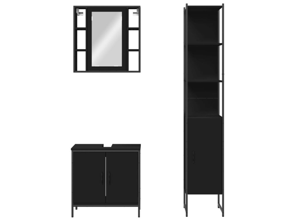 3dílný set koupelnových skříněk černý kompozitní dřevo 3214740
