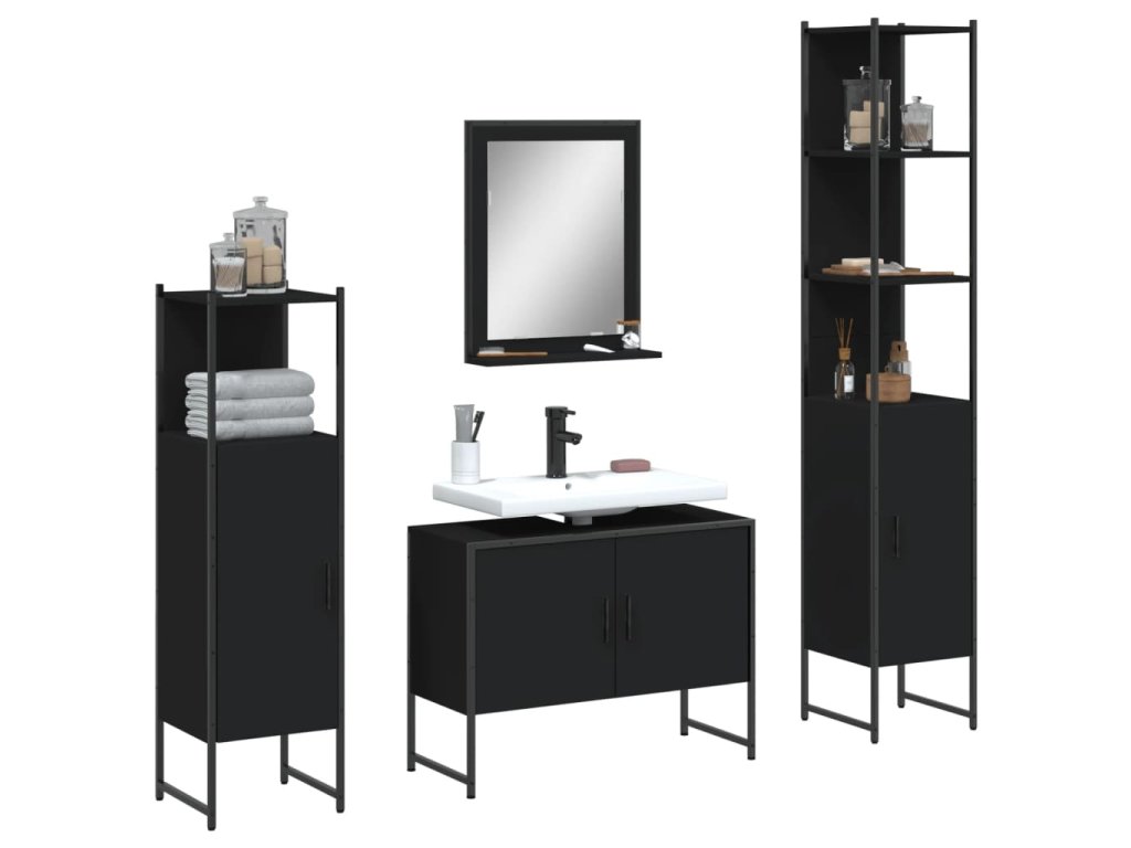 4dílná koupelnová sestava černá kompozitní dřevo 3214359