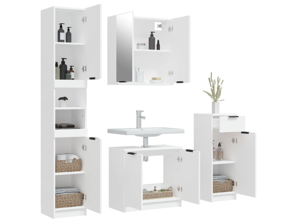 4dílná sada koupelnových skříněk bílá kompozitní dřevo 3115884