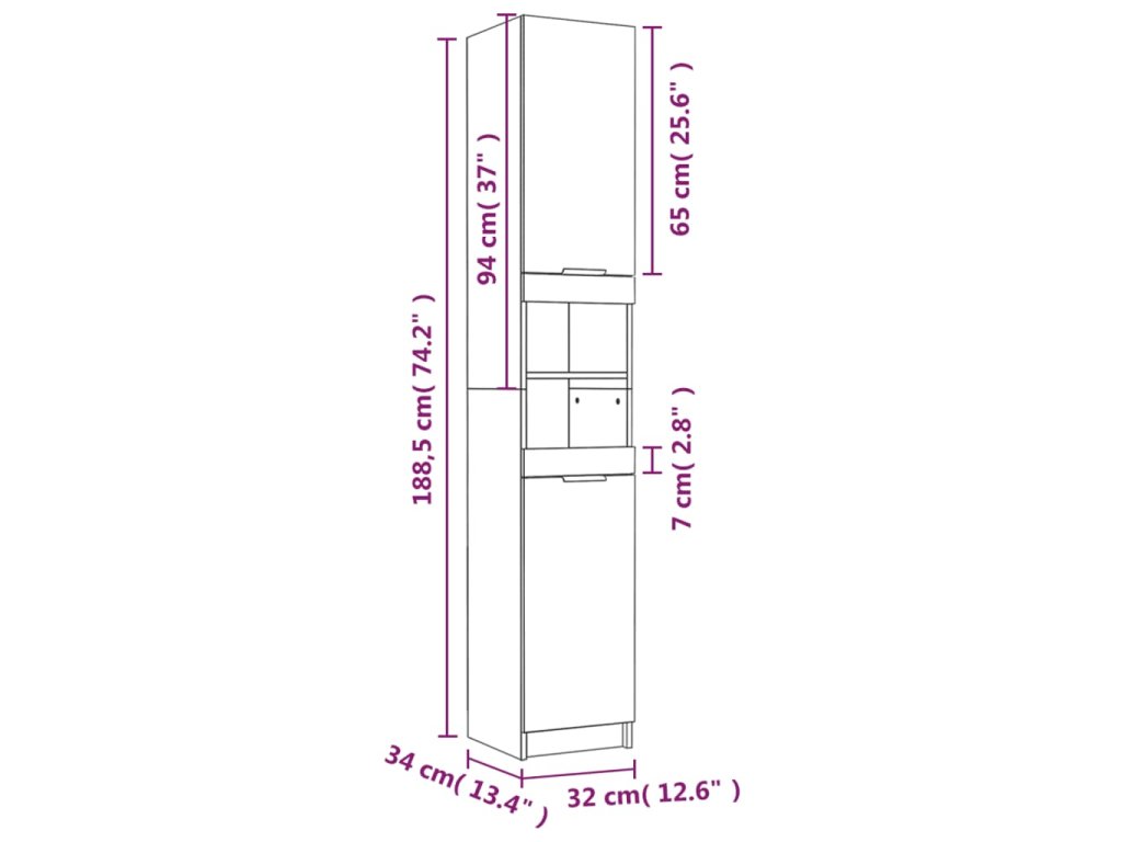 - Rozměry vysoké skříňky: 32 x 34 x 90 cm (D x Š x V)