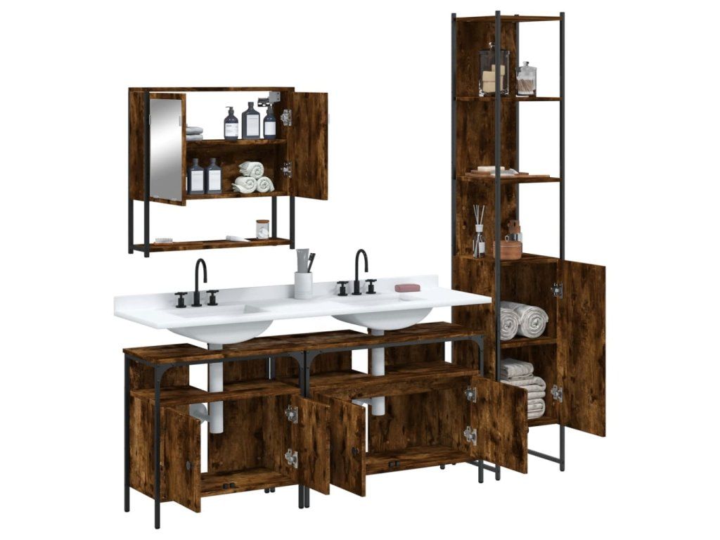 4dílný set koupelnového nábytku kouřový dub kompozitní dřevo 3214687