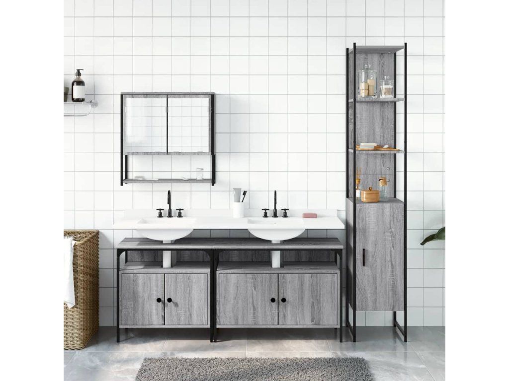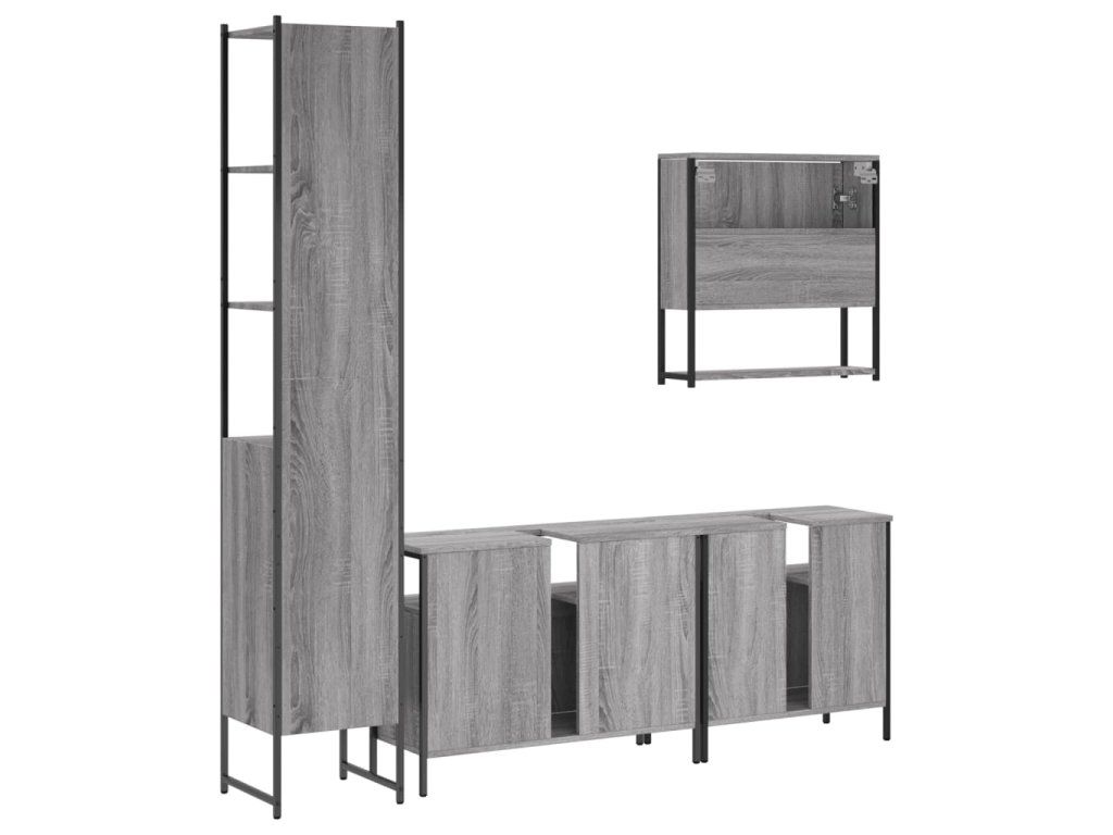 4dílný set koupelnového nábytku šedý sonoma kompozitní dřevo 3214688