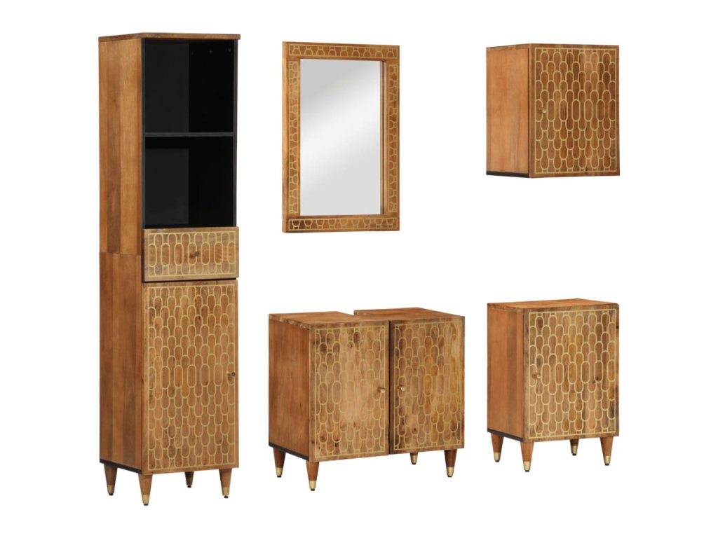 5dílná koupelnová sestava masivní mangovníkové dřevo 3206324