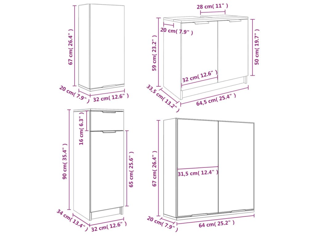5dílná sada koupelnových skříněk bílá kompozitní dřevo 3115852
