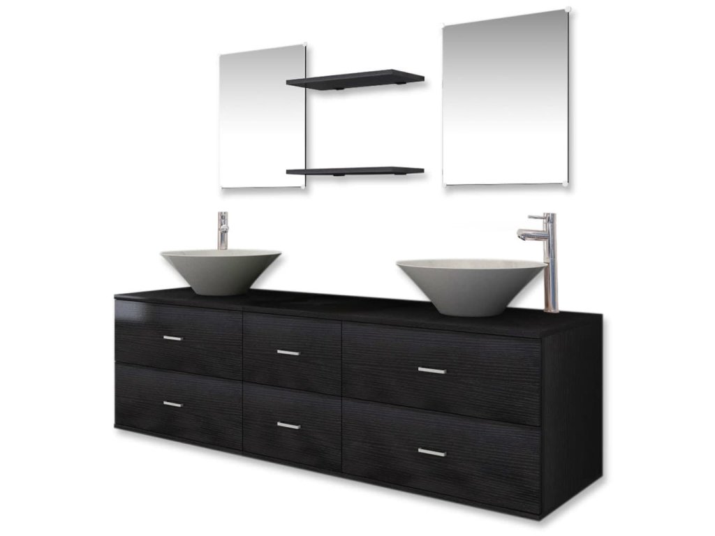9dílný set koupelnového nábytku s umyvadlem a baterií černý 273689
