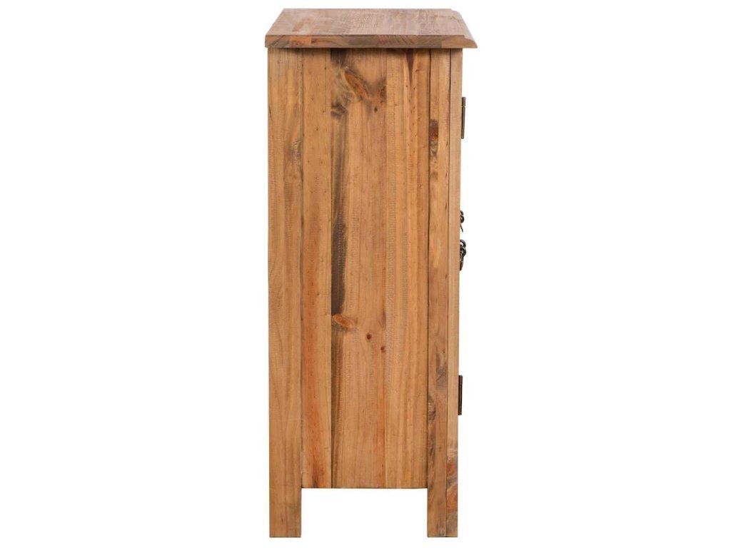 Pevná a odolná skříňka je zhotovená z masivního borového dřeva. Robustní horní část se skvěle hodí k vystavení váz a různých dekorativních předmětů. Uvnitř skříňky najdete 1 polici, která poskytuje spoustu úložného prostoru, kam si můžete uspořádat všechny vaše hygienické a kosmetické potřeby v dosahu ruky. Řemeslné zpracování podtrhuje její vintage styl.