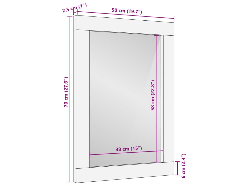 Koupelnové zrcadlo 50 x 70 x 2,5 cm masivní mangovník a sklo 358351