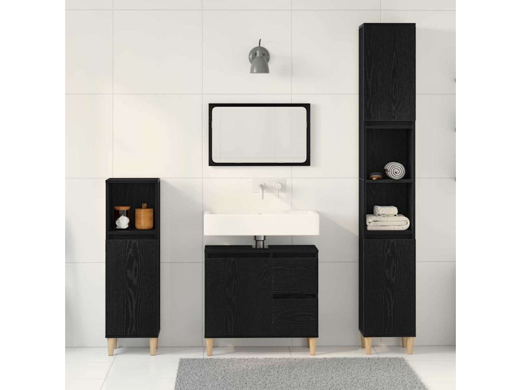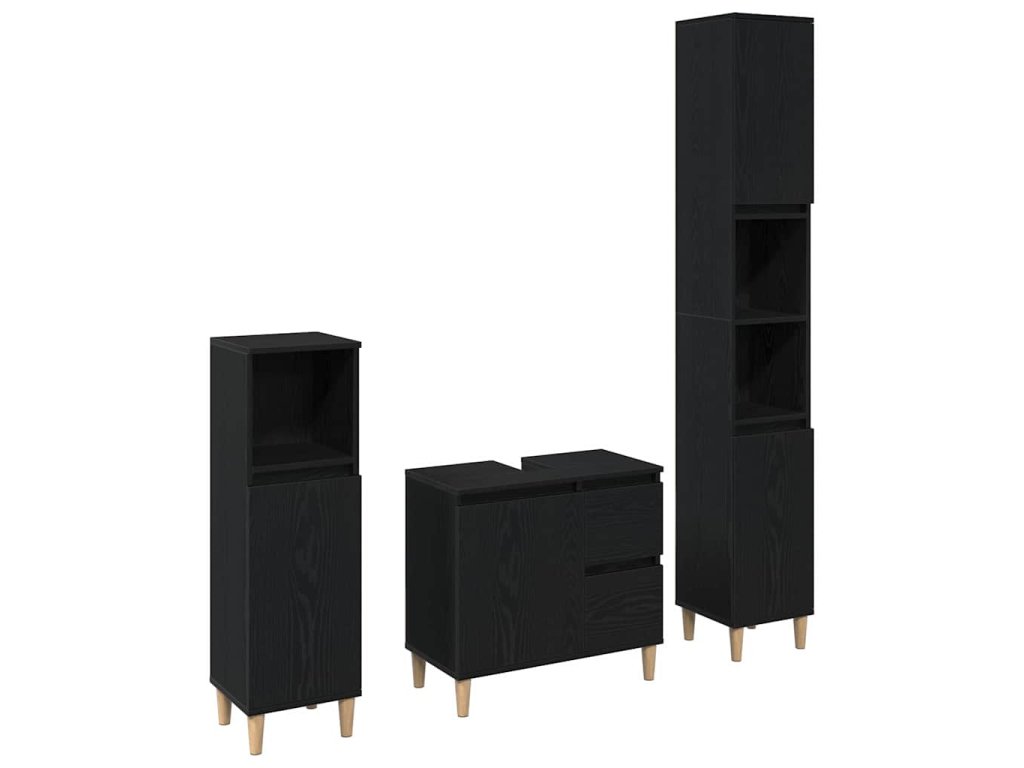 Sada koupelnového nábytku 3 pcs Černá Kompozitní dřevo 3333086
