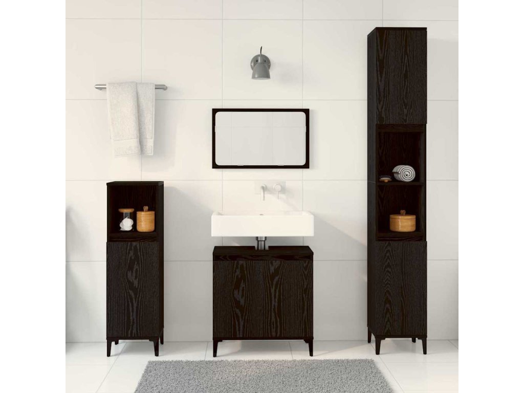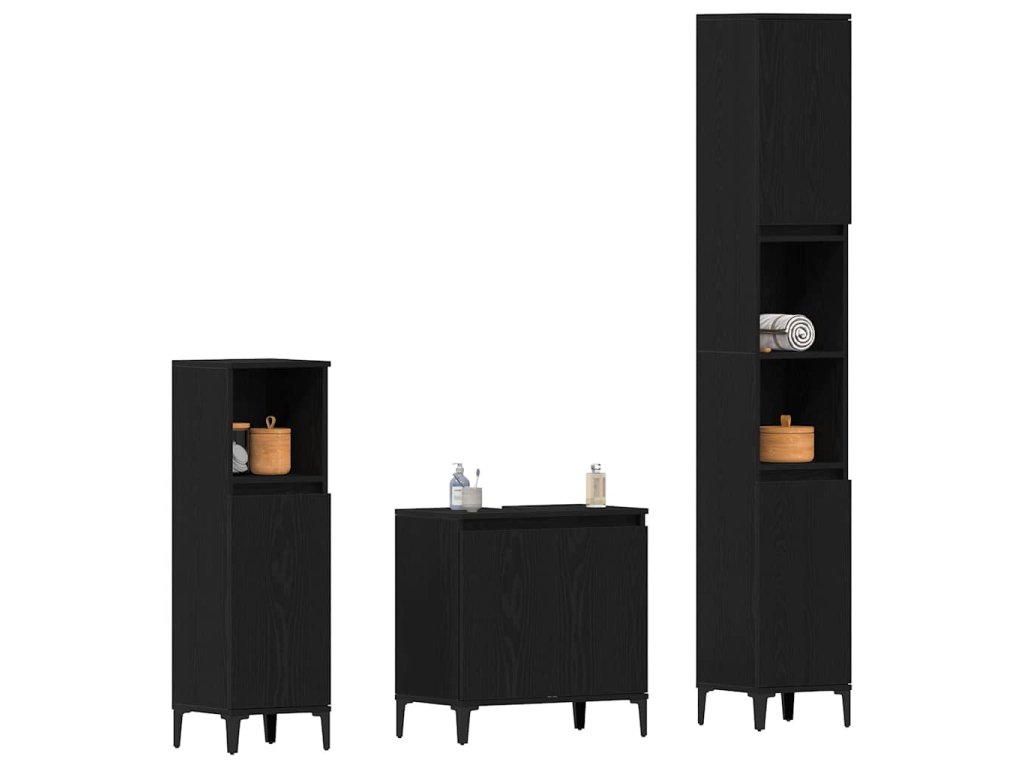 Sada koupelnového nábytku 3 pcs Černá Kompozitní dřevo 3333089