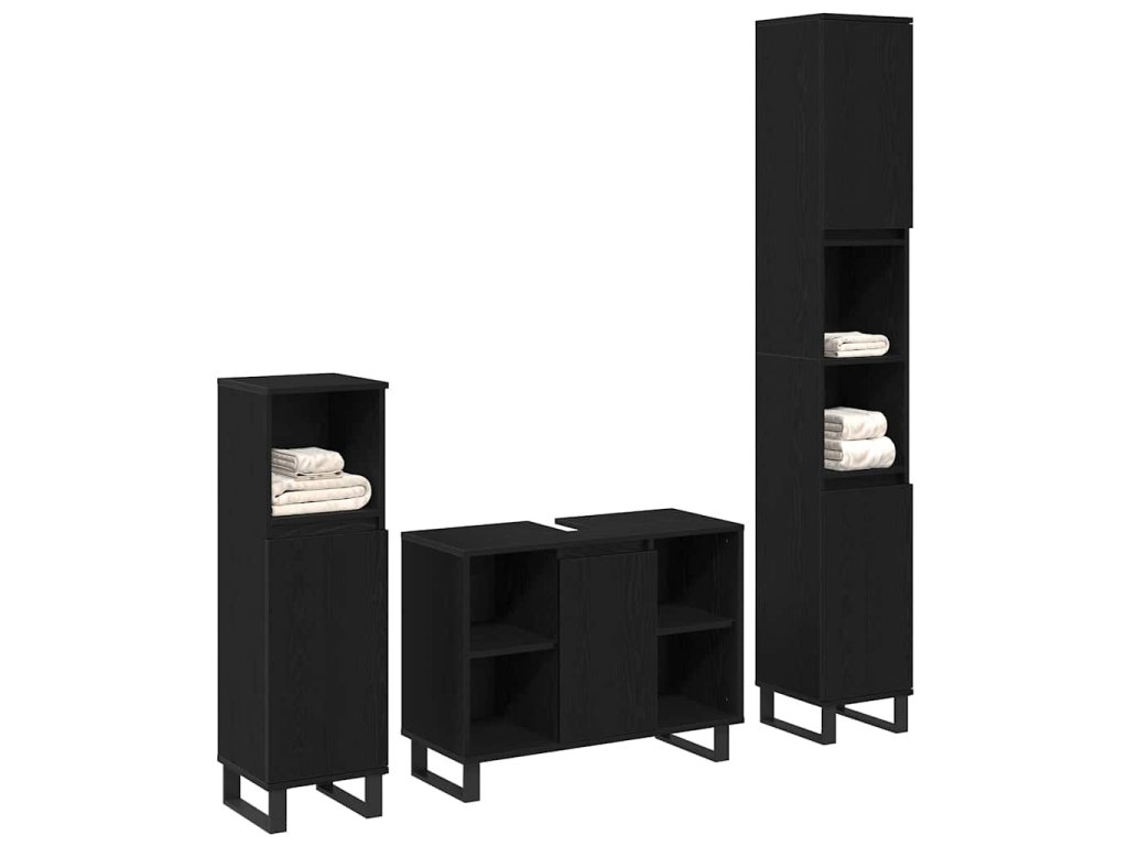 Sada koupelnového nábytku 3 pcs Černá Kompozitní dřevo 3378512