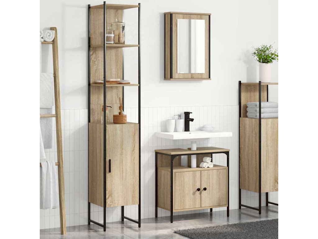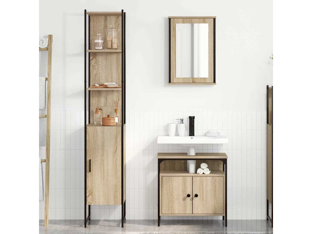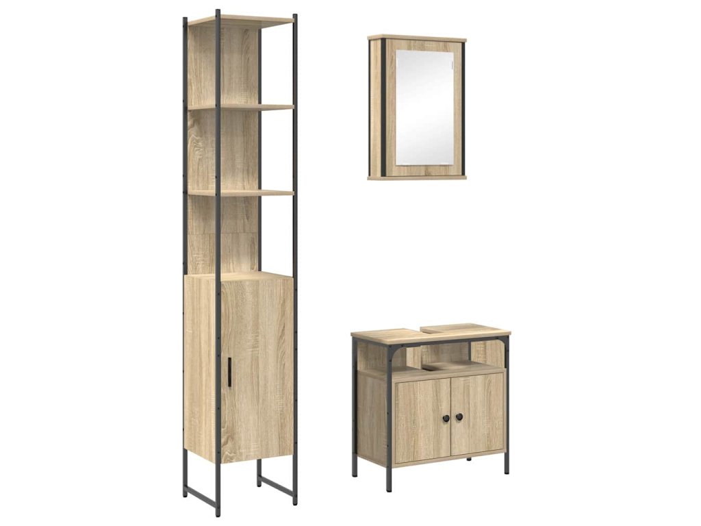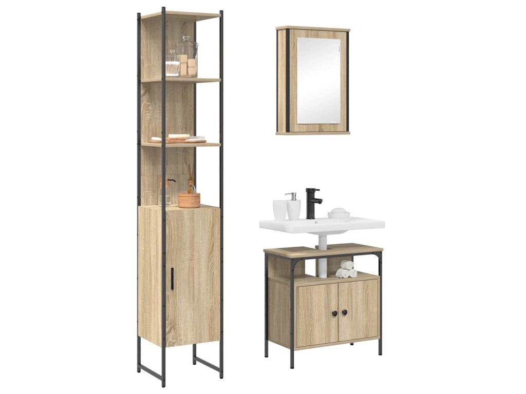 Sada koupelnového nábytku 3 pcs dub sonoma Dřevotříska a kov 3399399