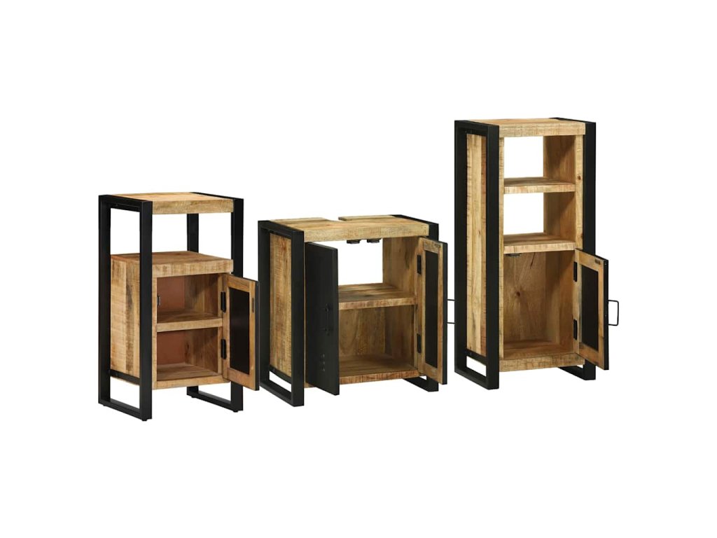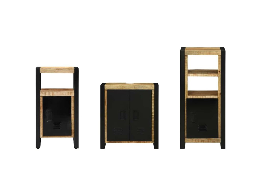 Tento industriální koupelnový skříňkový set je skvělou volbou, která přidá styl a funkčnost do každé moderní koupelny. Díky texturovanému povrchu a elegantnímu obdélníkovému tvaru přinese do vašeho prostoru šmrnc, a navíc nabízí spoustu prostoru na uskladnění. Každý kousek, od skříňky pod umyvadlo po nástěnnou skříňku, je navržen pro ty, co chtějí eleganci bez ztráty efektivity.