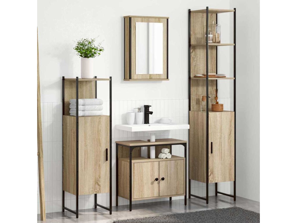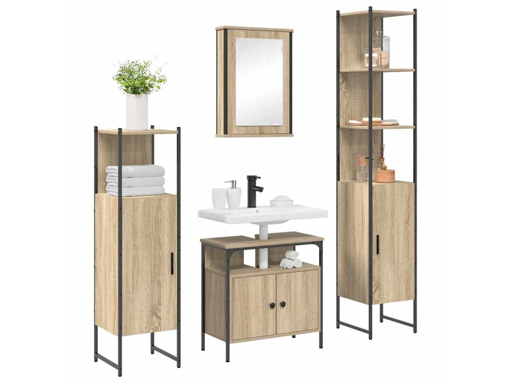 Sada koupelnového nábytku 4 pcs dub sonoma Dřevotříska a kov 3399394