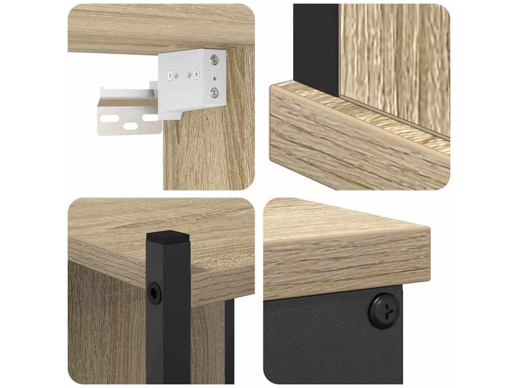 - Špičkové materiály: Tato koupelnová souprava kombinuje inženýrské dřevo a ocel pro stylový vzhled a odolný melaminový povrch. Je postavena tak, aby vydržela, odolává skvrnám a opotřebení, i ve vlhkých podmínkách.