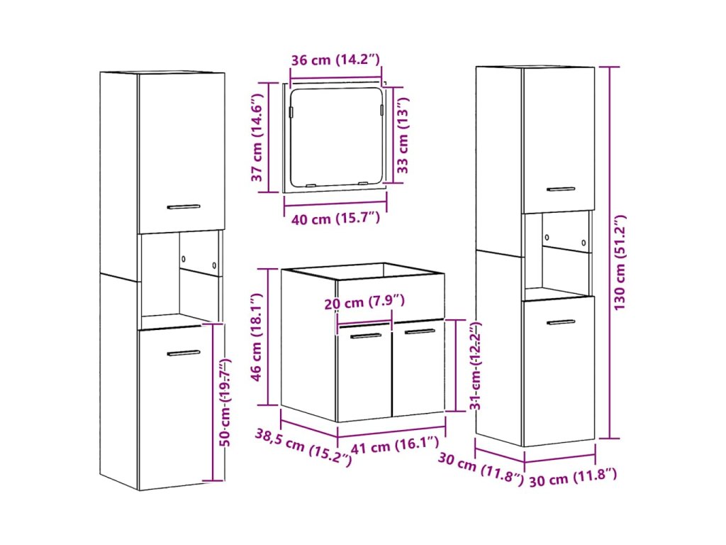 - Inženýrské dřevo: Vyrobené z kvalitního inženýrského dřeva, tahle sestava je navržená, aby vydržela a zvládla vlhkost v koupelně. Vybrané pro svou odolnost a hladký vzhled, zůstává stylová a snadno udržovatelná po dlouhou dobu.