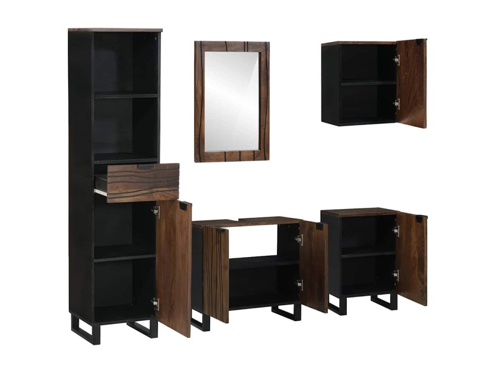 - Funkce / design: Ideální pro vnitřní použití, tahle koupelnová sada ukazuje unikátní barvy a struktury, které přidávají kouzlo. Dveře na pantech se otevírají hladce a je tu dost úložného prostoru pro toaletní potřeby, ručníky a další nutnosti. Tato kombinace vytváří skvěle vyvážený, funkční design, ideální pro moderní život.