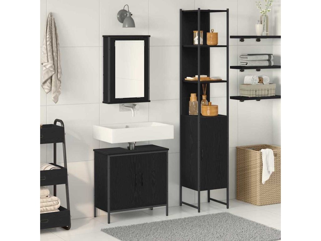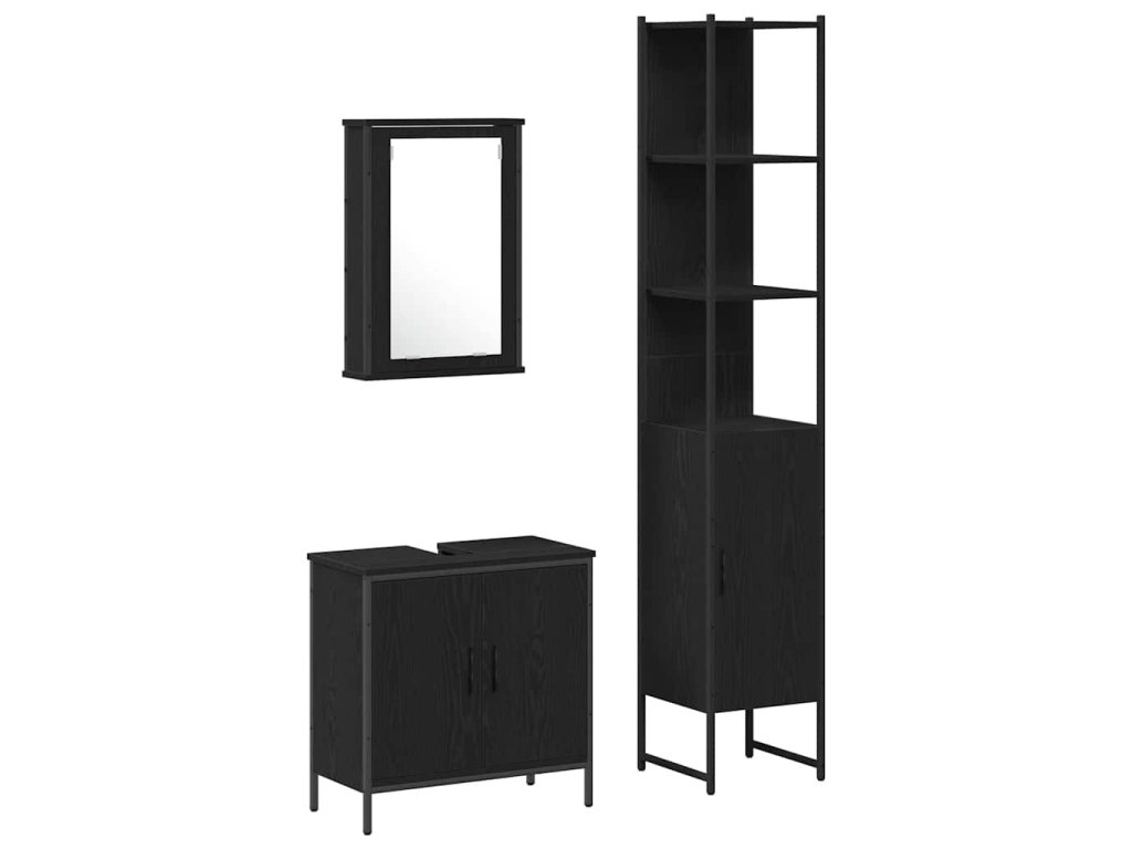 Sada koupelnového nábytku s policí 3 pcs Černá Kompozitní dřevo 3334401