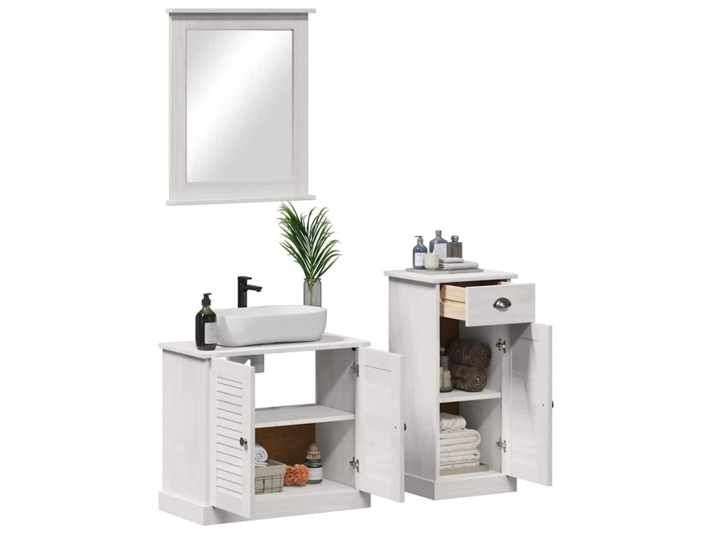 - 1 x skříňka pod umyvadlo. 1 x koupelnová skříň (L). 1 x koupelnová skříň (S). 1 x nástěnná koupelnová skříň. 1 x zrcadlo