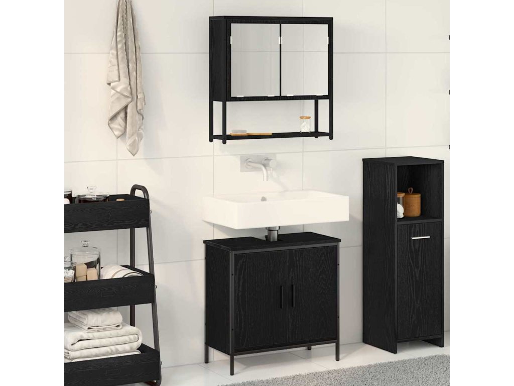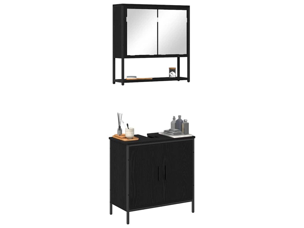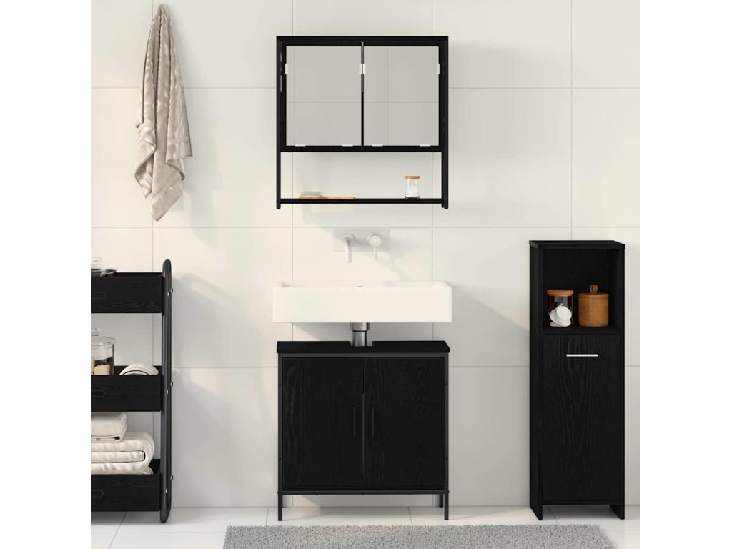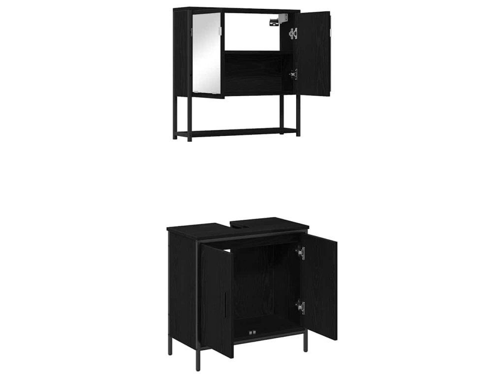 Sada koupelnového nábytku se dveřmi 2 pcs Černá 60 x 30 x 60 cm 3334324