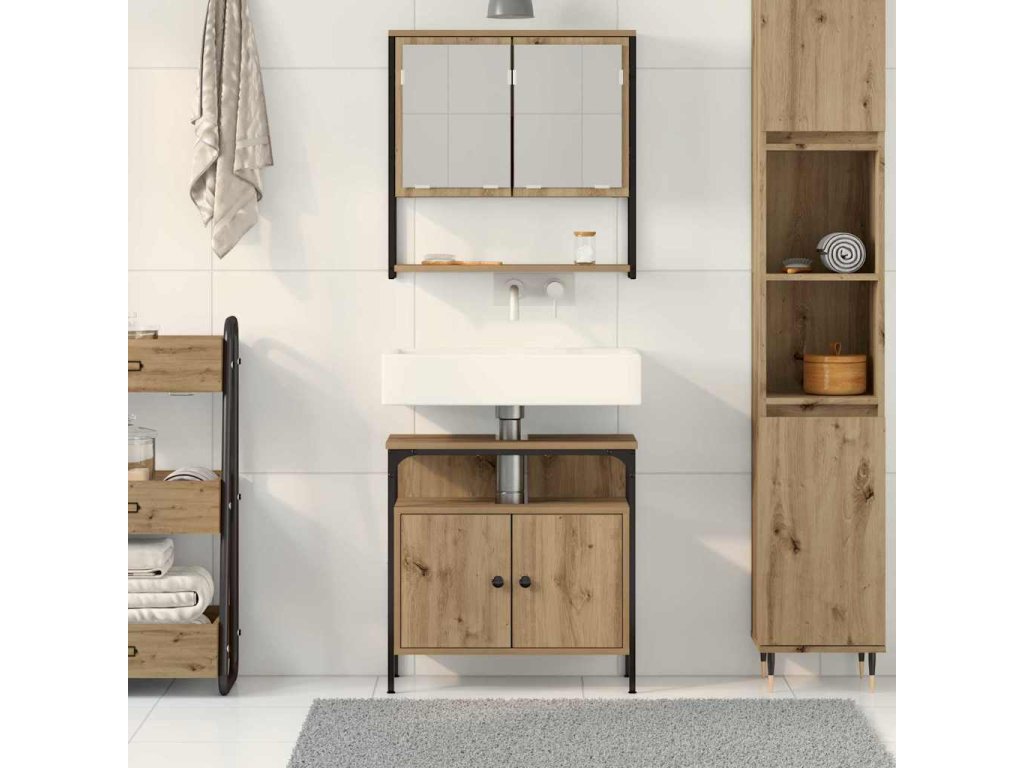 Moderní koupelnový nábytek spojuje skvělý design a chytrou funkčnost, takže je ideální pro oživení jakékoli koupelny. Díky svěžímu stylu a vysoké kvalitě kompozitního dřeva má zvýšenou stabilitu a dlouhou životnost. Set se skládá ze dvou samostatných kusů, perfektně udržujících vaše koupelnové věci na jednom místě. Jeho elegantní linie a jednoduchý styl jsou skvélé pro moderní domácnosti.