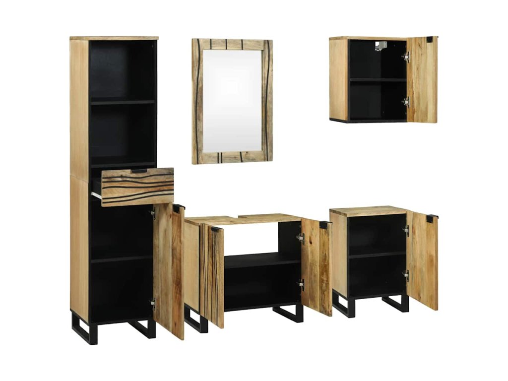 - Funkce / design: Ideální pro vnitřní použití, tahle koupelnová sada ukazuje unikátní barvy a struktury, které přidávají kouzlo. Dveře na pantech se otevírají hladce a je tu dost úložného prostoru pro toaletní potřeby, ručníky a další nutnosti. Tato kombinace vytváří skvěle vyvážený, funkční design, ideální pro moderní život.