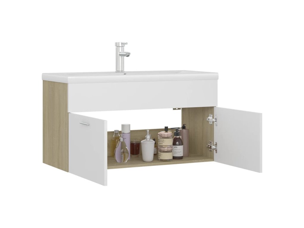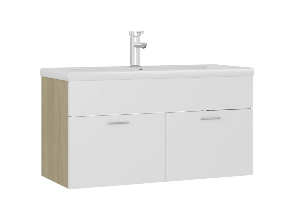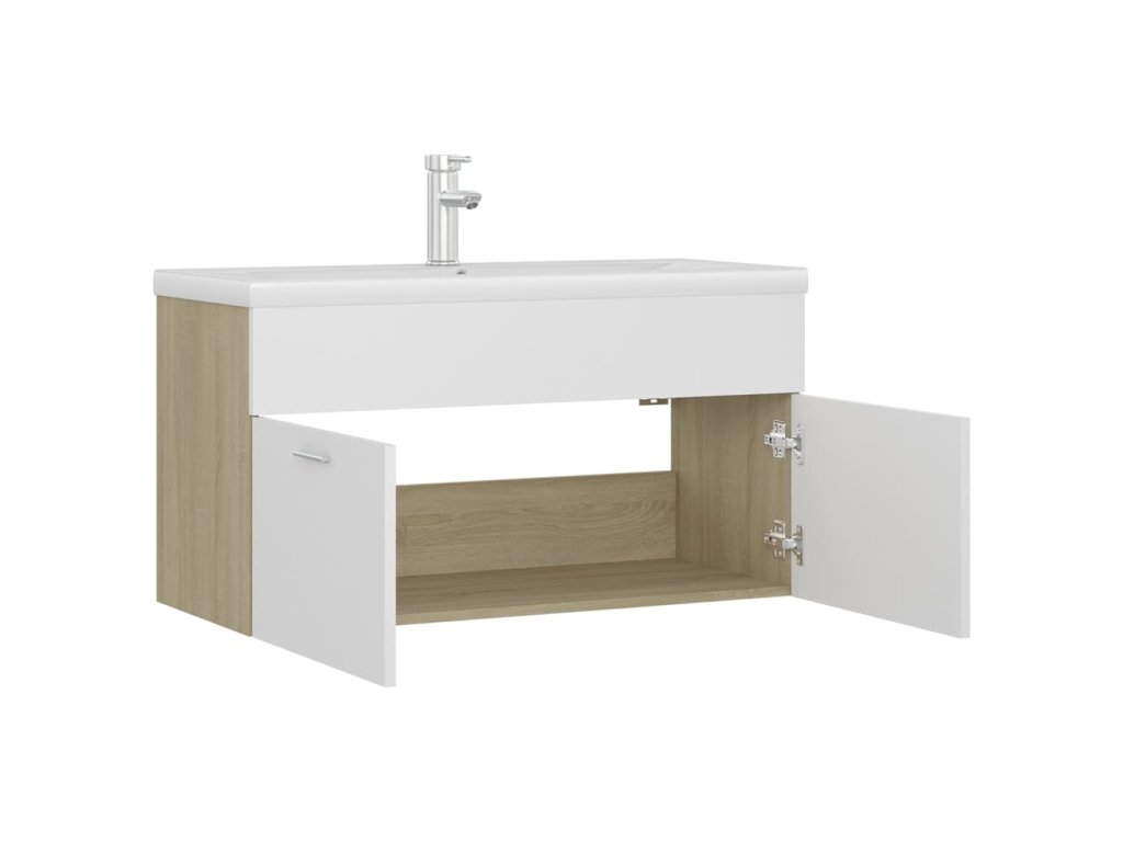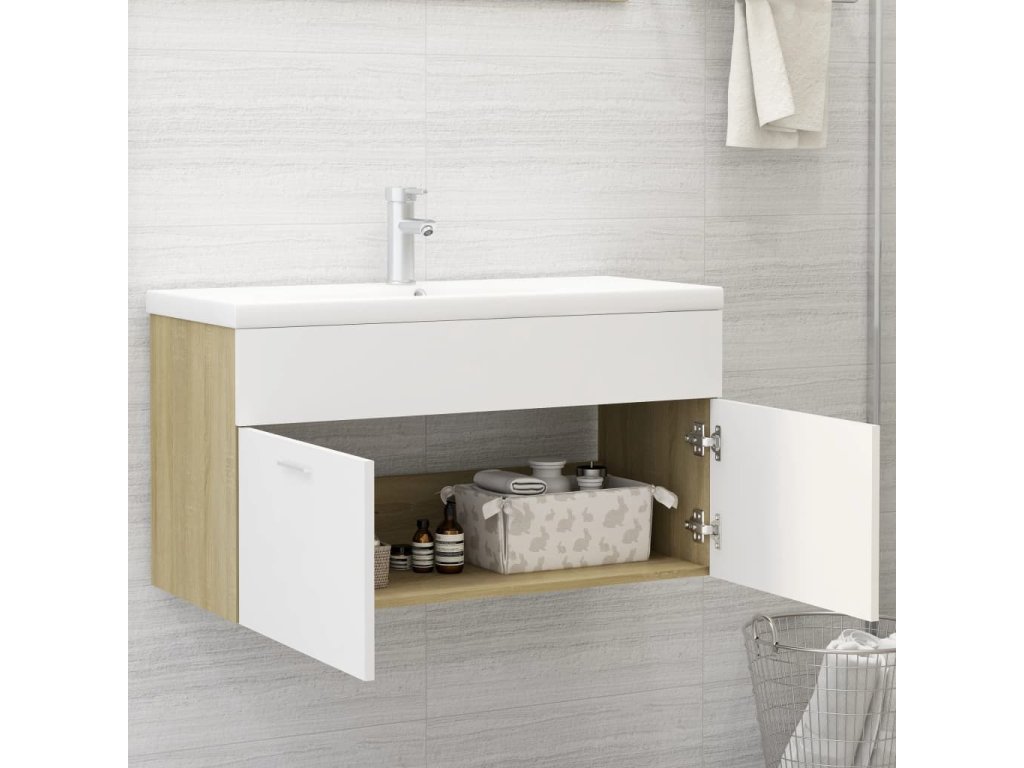 Skříňka se zápustným umyvadlem bílá dub sonoma kompozitní dřevo 3071293