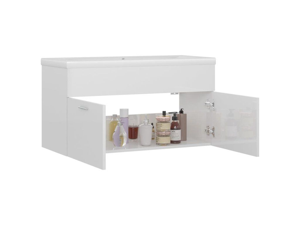 Skříňka se zápustným umyvadlem bílá lesklá kompozitní dřevo 3070844
