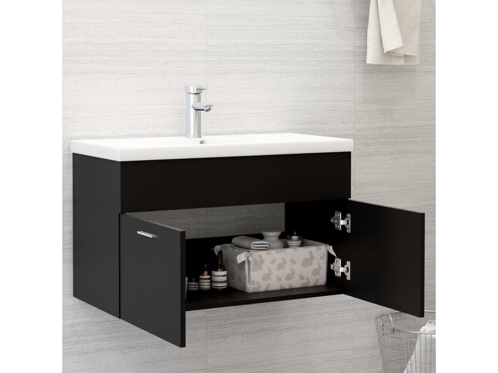 Skříňka se zápustným umyvadlem černá kompozitní dřevo 3070830