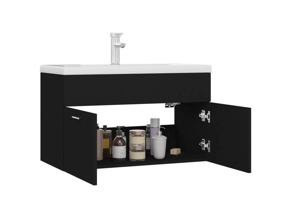 Skříňka se zápustným umyvadlem černá kompozitní dřevo 3071280