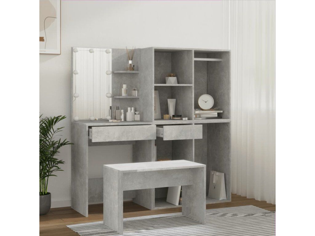 Toaletní stolek sada s LED betonově šedý kompozitní dřevo 3114102
