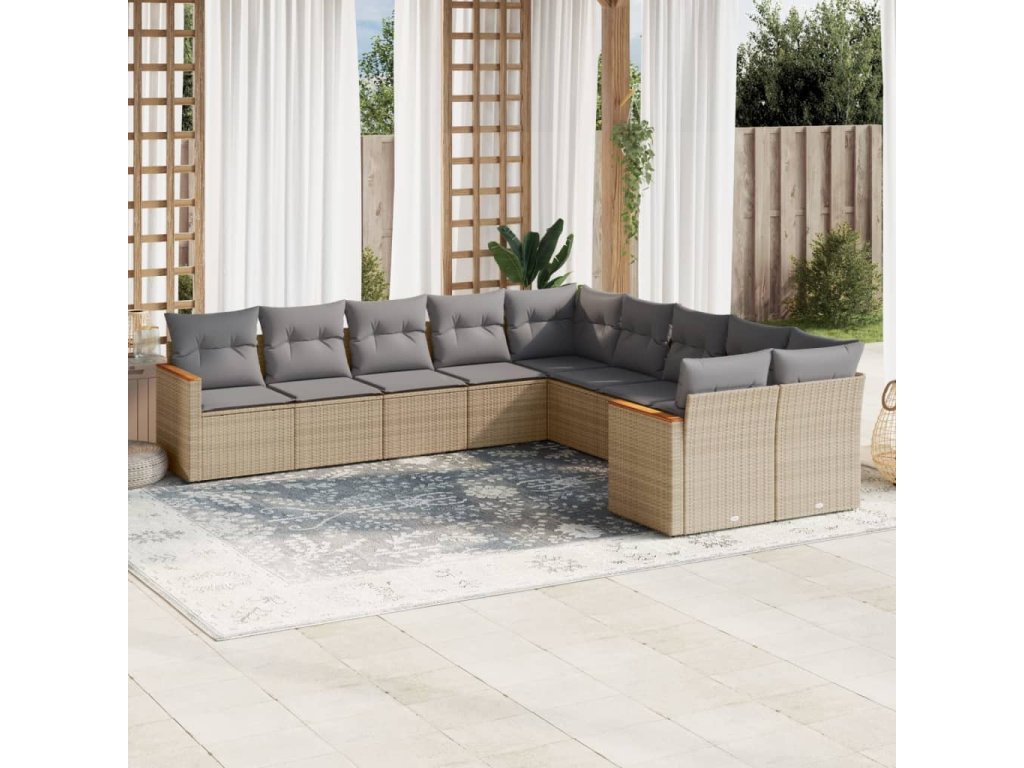 10dílná zahradní sedací souprava a podušky mix béžové polyratan 3226353