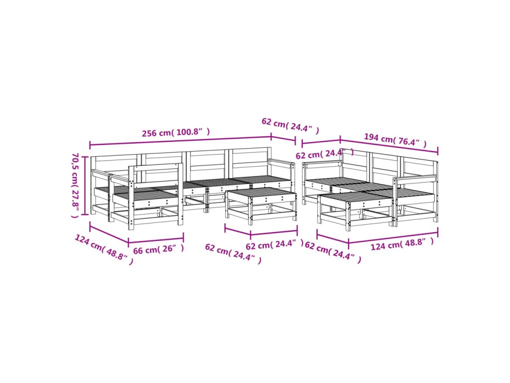 - Rozměry středové pohovky: 62 x 62 x 70,5 cm (D x Š x V)